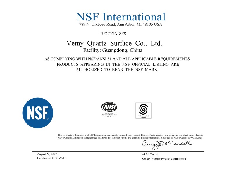 Vemy is a company established in 2007 with two factories located in Zhongshan and Foshan cities. Vemy specialize in manufacturing quartz stone products for kitchen countertops, bathroom countertops, flooring tiles, walls, windowsills, etc., suitable for commercial and residential buildings. With advanced R&D equipment, machines, and excellent engineers, Vemy has passed the ISO9001-2008 quality management system and has become one of the leading manufacturers in China.